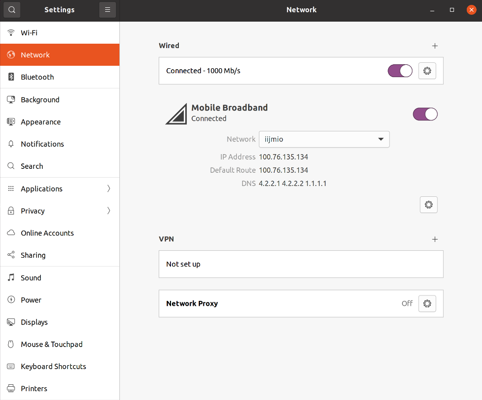 後はUbuntu上でMobile Broadbandの設定をしてあげれば繋がるようになります。