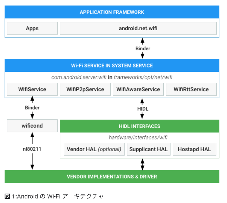 まずはWi-Fiですが、AndroidではWi-Fi機能はいくつかのモジュールで構成されているようです。