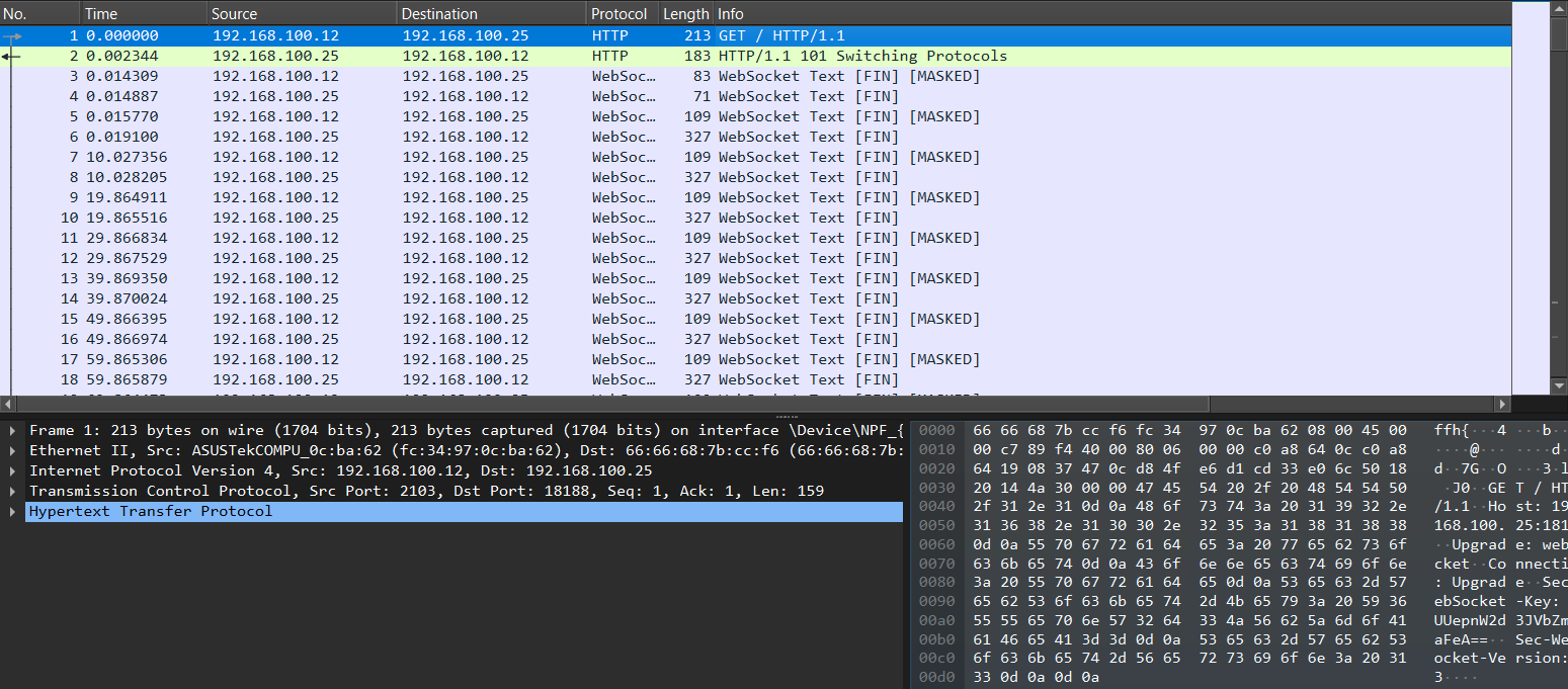 通信の暗号化もないので全体を把握するのはめちゃくちゃイージーですね。