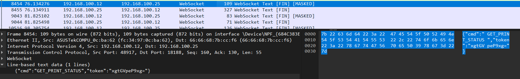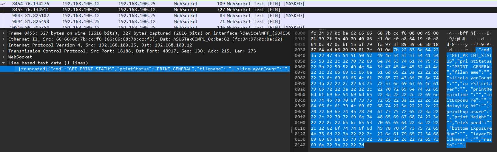 なのでリバースエンジニアリングするしかないというわけですが、幸いHalot Mage ProにはイーサネットポートがあるわけなのでHALOT BOX(独自スライサーソフト)を弄りながらWiresharkでパケットを覗けば大抵のことは分かります。実際大抵のことは分かりました。