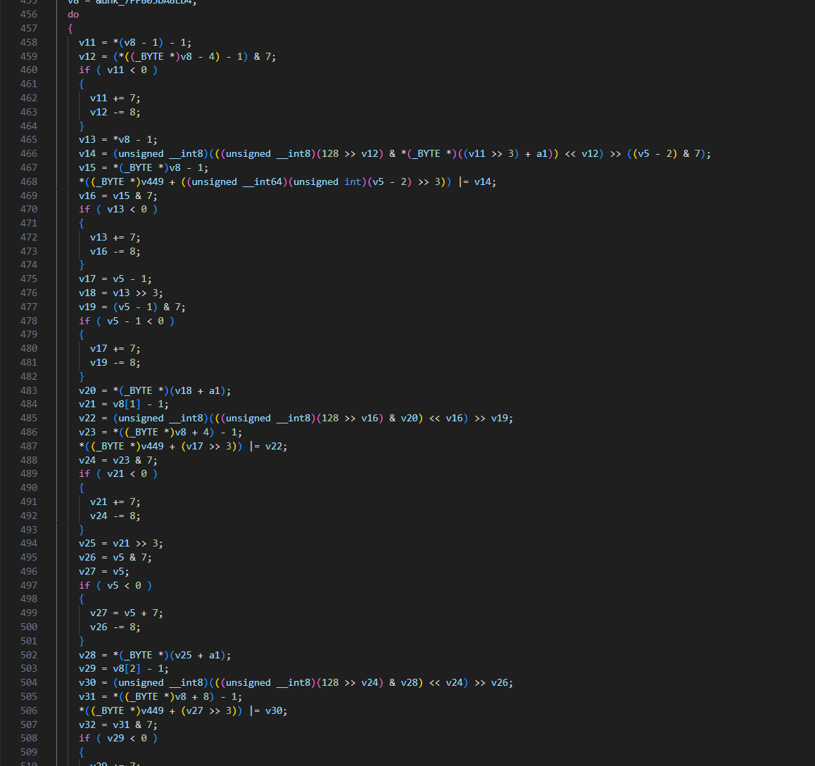 ただ、こんなにシフト演算を多用するということは何かしらの暗号化がされているというのは分かります。
